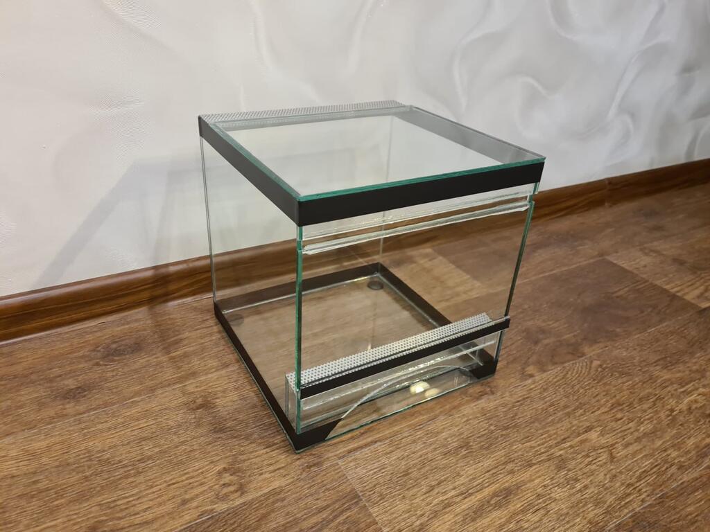 Террариум полностью сделан из силикатного стекла, что позволяет разглядывать, что находится внутри со всех сторон.