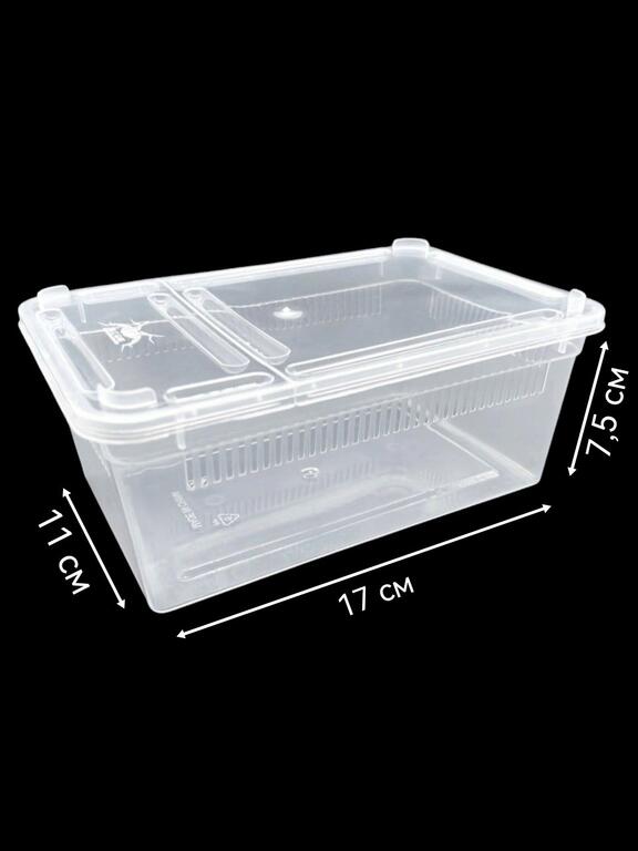Мини-террариум разработан специально для насекомых, пауков, скорпионов. Возможно использование в качестве переноски для мелких рептилий, многоножек, кивсяков, улиток и жуков. Имеет прозрачные стенки, позволяющие с легкостью наблюдать за жизнью ваших питомцев, создавая эффект естественной среды обитания. Вентиляционные дырки обеспечивают необходимый приток воздуха, предотвращая накопление углекислого газа и поддерживая оптимальный микроклимат. Крышка, которая приоткрывается сверху, облегчает доступ к террариуму для кормления и ухода за животным.