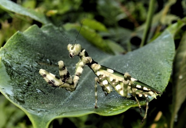 Окраска данного богомола – пример агрессивной мимикрии, формы маскировки, при которой цвета и узоры хищника приманивают добычу.