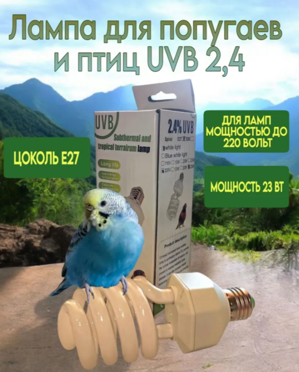 Лампа идеально подходит для использования в клетках, вольерах и террариумах. Она обеспечивает безопасное количество полезного UVB и UVA излучения, способствующего физическому и психологическому здоровью птиц.