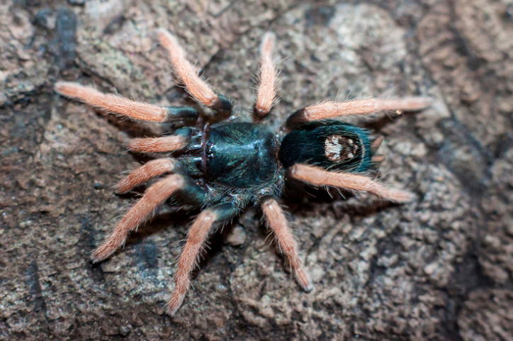 Длина в размахе лап взрослых особей 5-6 см. Окраска паука черная, а лап – розовато-оранжевая. Темпы роста этого паука средние.