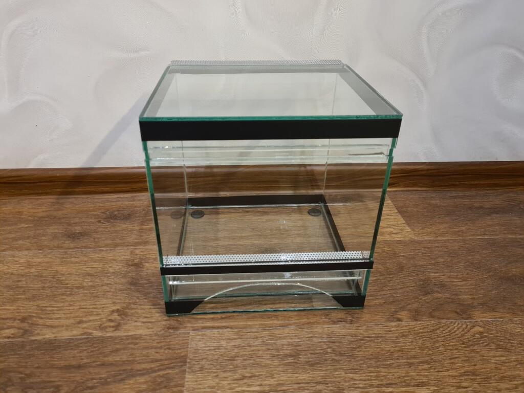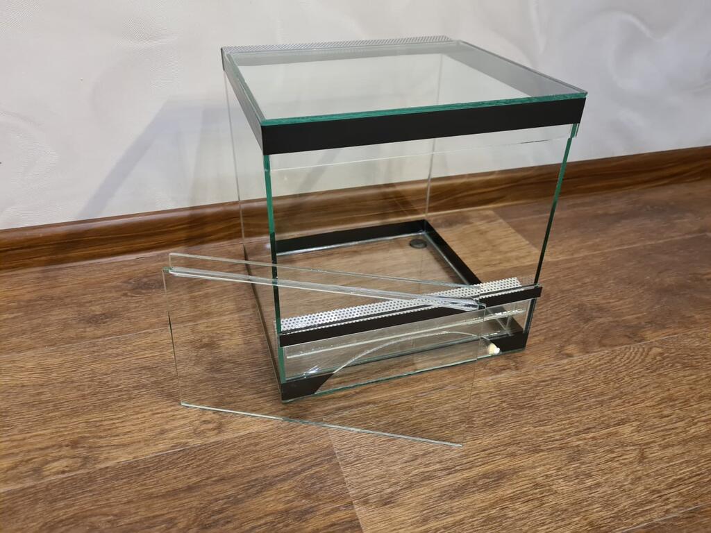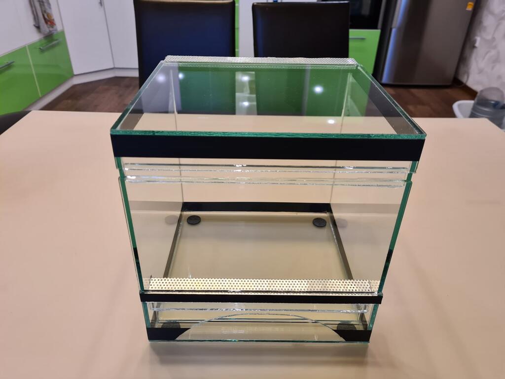Террариум полностью сделан из силикатного стекла, что позволяет разглядывать, что находится внутри со всех сторон.