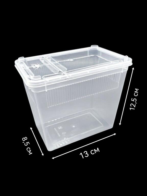 Мини-террариум разработан специально для насекомых, пауков, скорпионов. Возможно использование в качестве переноски для мелких рептилий, многоножек, кивсяков, улиток и жуков. Имеет прозрачные стенки, позволяющие с легкостью наблюдать за жизнью ваших питомцев, создавая эффект естественной среды обитания. Вентиляционные дырки обеспечивают необходимый приток воздуха, предотвращая накопление углекислого газа и поддерживая оптимальный микроклимат. Крышка, которая приоткрывается сверху, облегчает доступ к террариуму для кормления и ухода за животным.