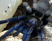 Длина 5-6 сантиметров по телу, 18 см в размахе лап. Существуют коричневые, черные и голубые морфы. Температура - 27-28 градусов. Влажность - 80-90 процентов. Продолжительность жизни около 15 лет. Агрессивный. Укус болезненный.
